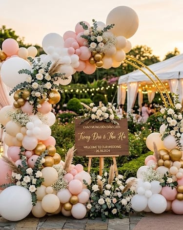 Sáng tạo không giới hạn: Từ những cổng chào bong bóng sang trọng, backdrop check-in hoành tráng đến những chùm bóng thả trần bay bổng.
